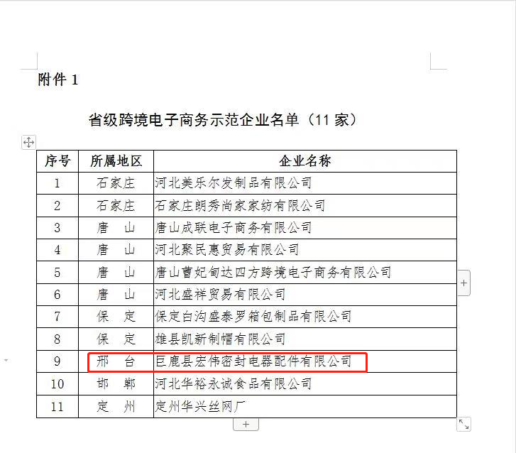 巨鹿縣宏偉密封電器配件有限公司被評為跨境...